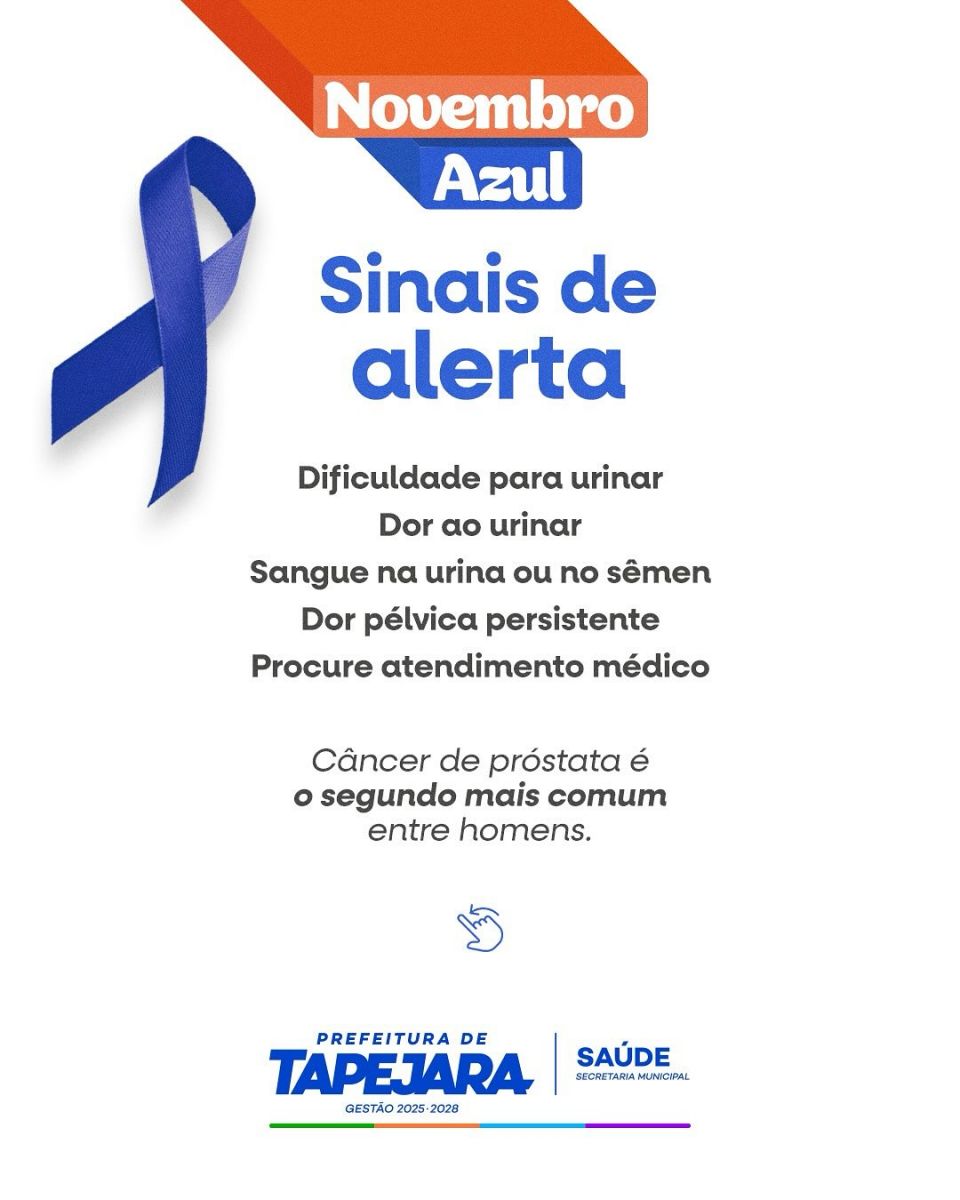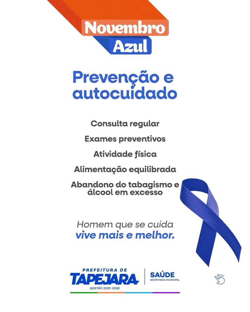 A Secretaria de Saúde de Tapejara por meio da Prefeitura Municipal, divulgou a programação alusiva ao Novembro Azul, mês dedicado à conscientização e prevenção do câncer de próstata e outras doenças que afetam a saúde do homem.