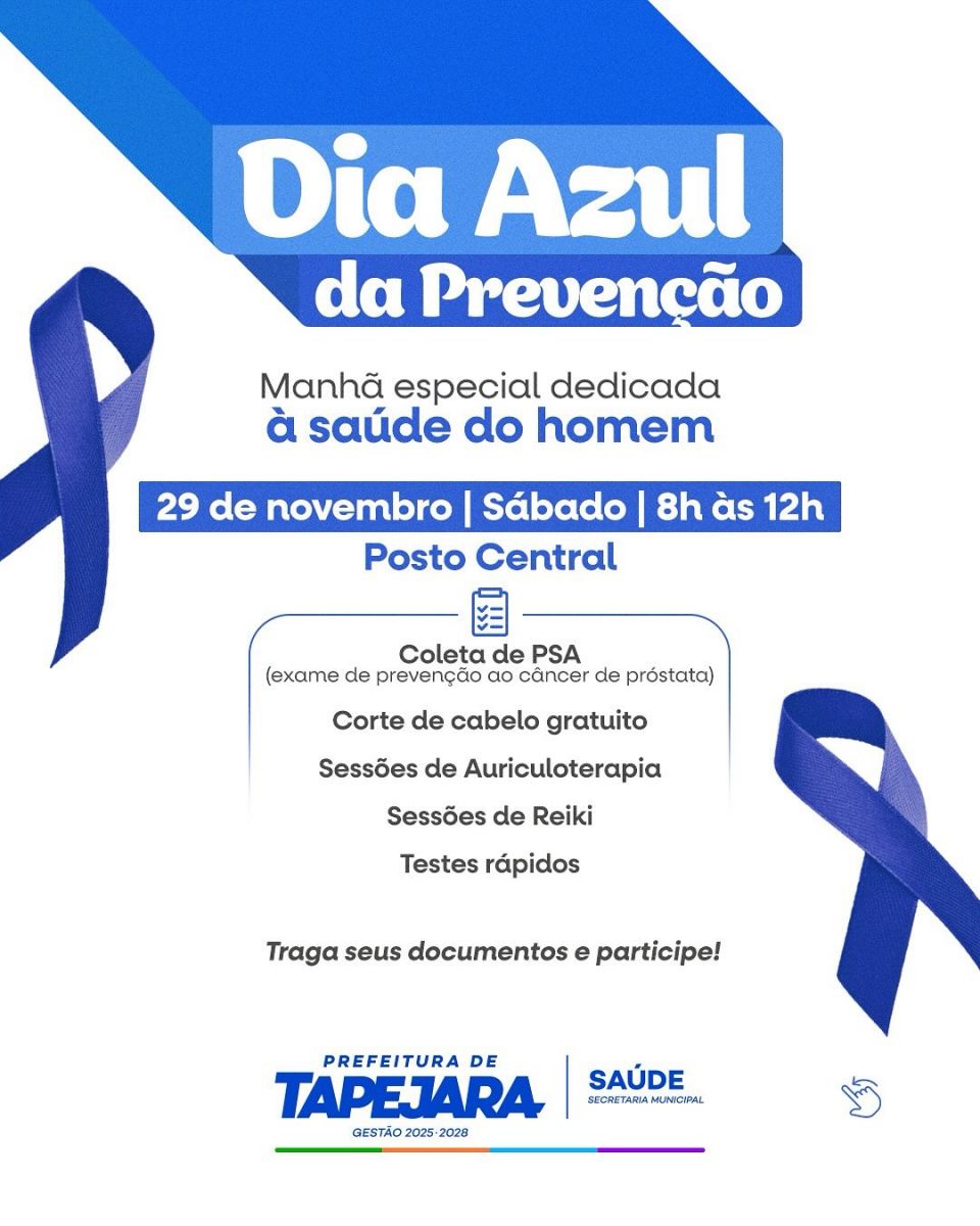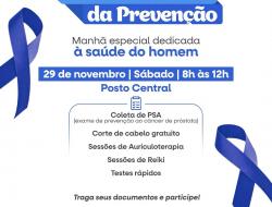 Já no Dia Azul da Prevenção, marcado para o dia 29 de novembro (sábado), das 8h às 12h, no Posto Central, haverá uma programação ampliada com diversos serviços gratuitos à população masculina.