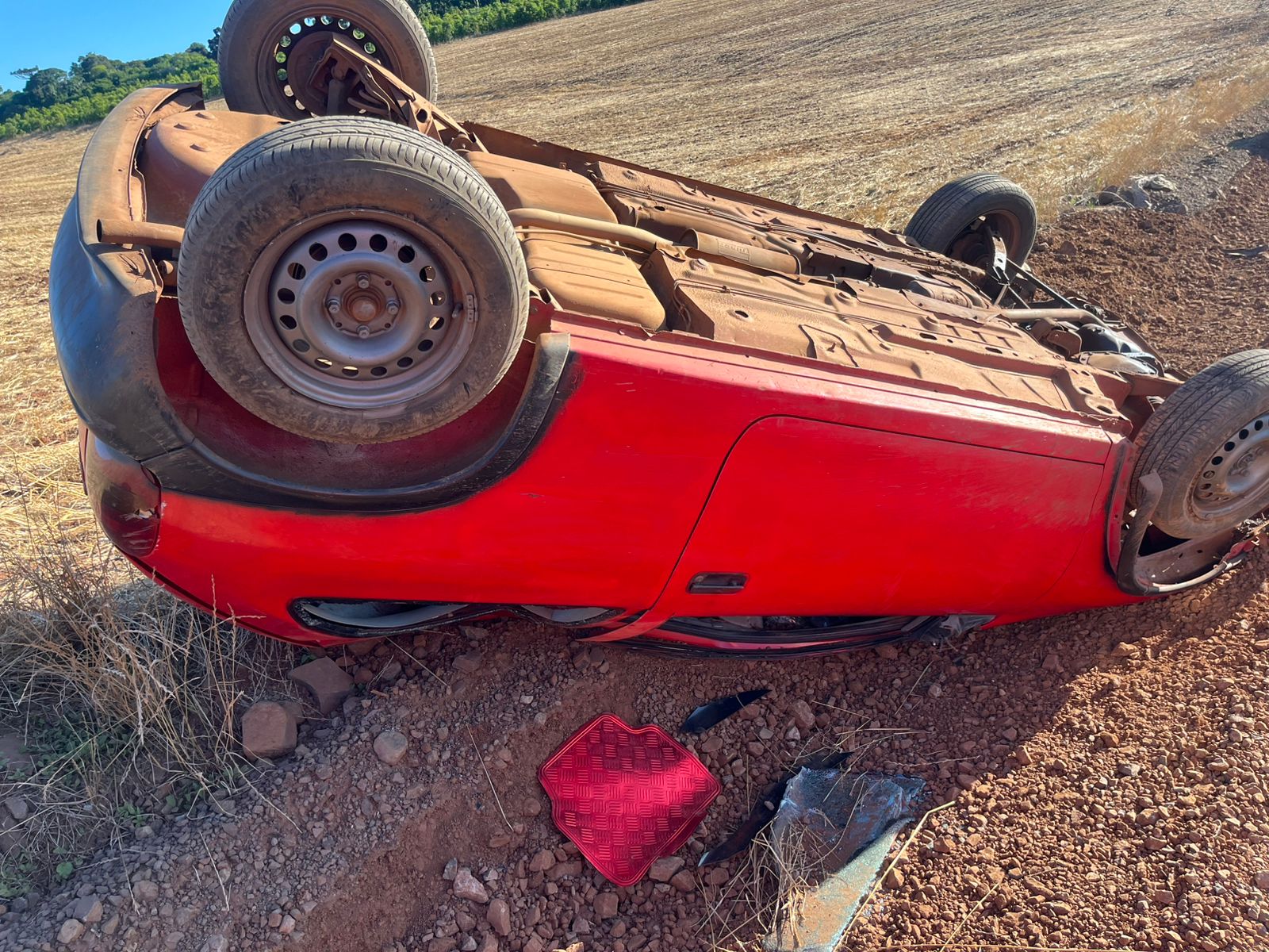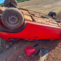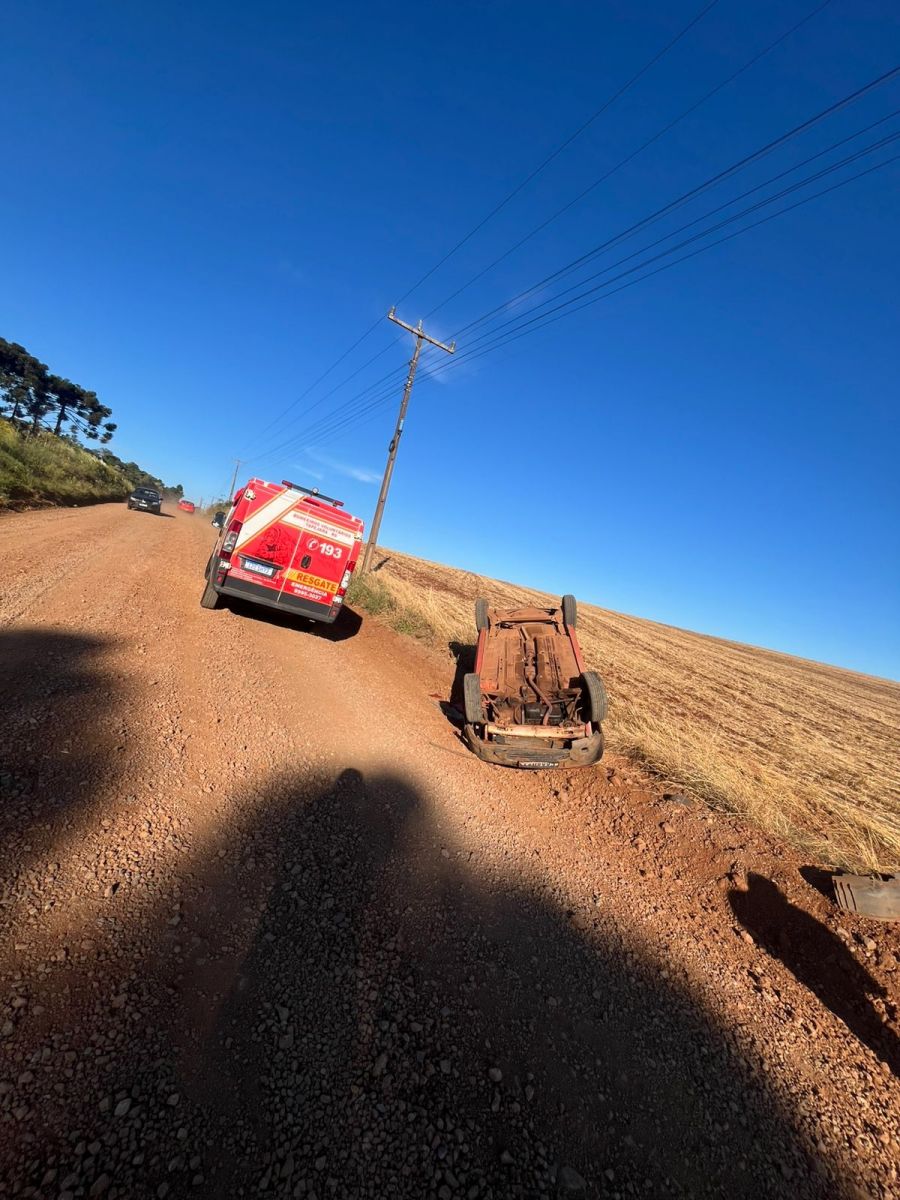 Uma saída de pista seguida de capotamento foi registrada na tarde desta segunda-feira (10), por volta das 16h50, na saída para a Linha Quatro, em Tapejara.