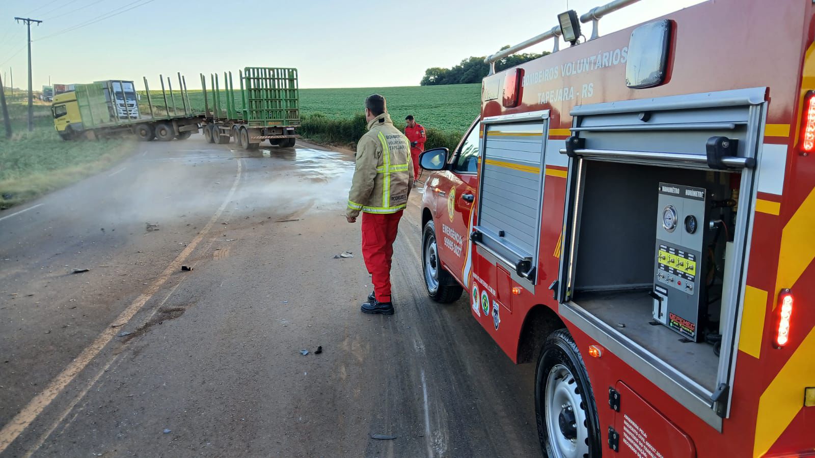 A colisão, que ocorreu na altura do quilômetro 5, nas proximidades da empresa Ouro Branco, envolveu um VW Voyage e um caminhão semirreboque. Segundo informações dos Bombeiros Voluntários de Tapejara, a vítima conduzia o automóvel e morreu no local. O motorista do caminhão não sofreu ferimentos.