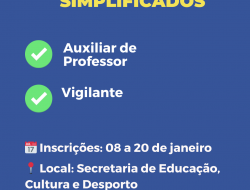 As inscrições são gratuitas e começam nesta quinta-feira (08), seguindo até o dia 20 de janeiro. Os interessados devem realizar a inscrição presencialmente, mediante entrega de documentação em envelope lacrado, na Secretaria Municipal de Educação, Cultura e Desporto, localizada no Centro Administrativo de Getúlio Vargas.