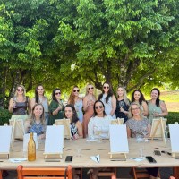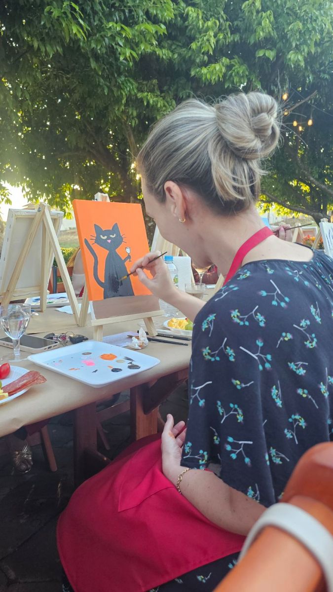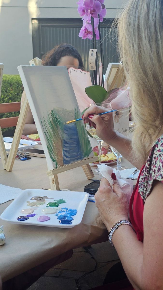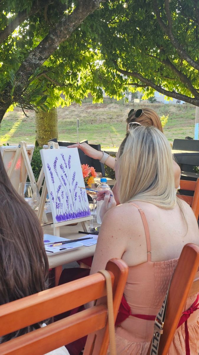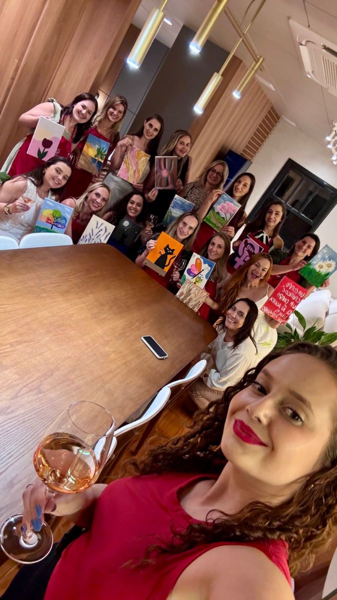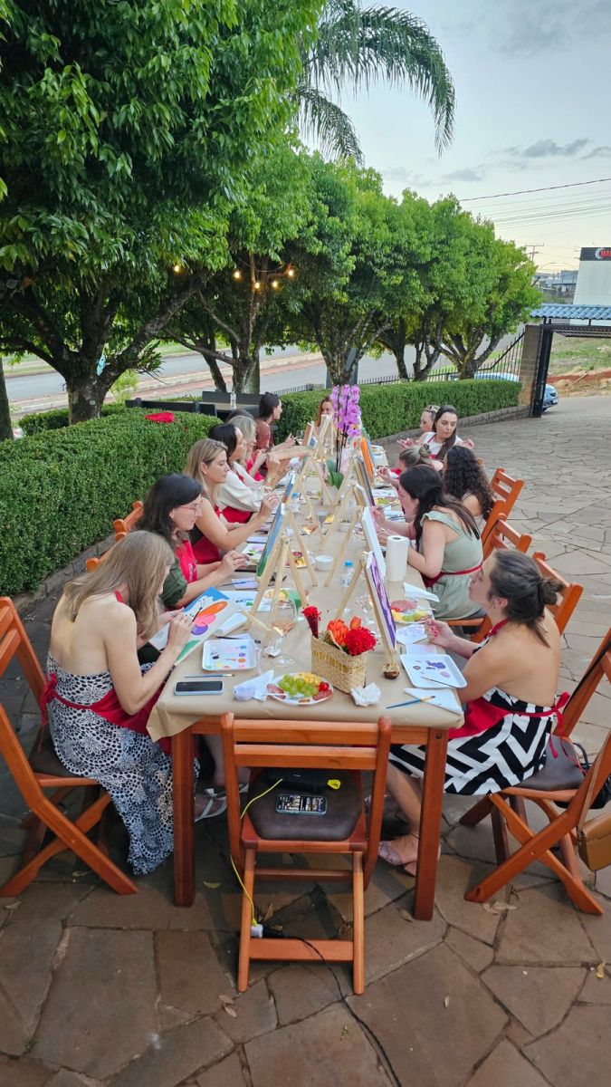 A programação contou com uma atividade de pintura livre em tela, acompanhada de degustação de vinhos e tábuas de frios. A proposta do encontro foi oferecer um espaço de pausa e conexão, focando na qualidade de vida e no bem-estar das participantes.